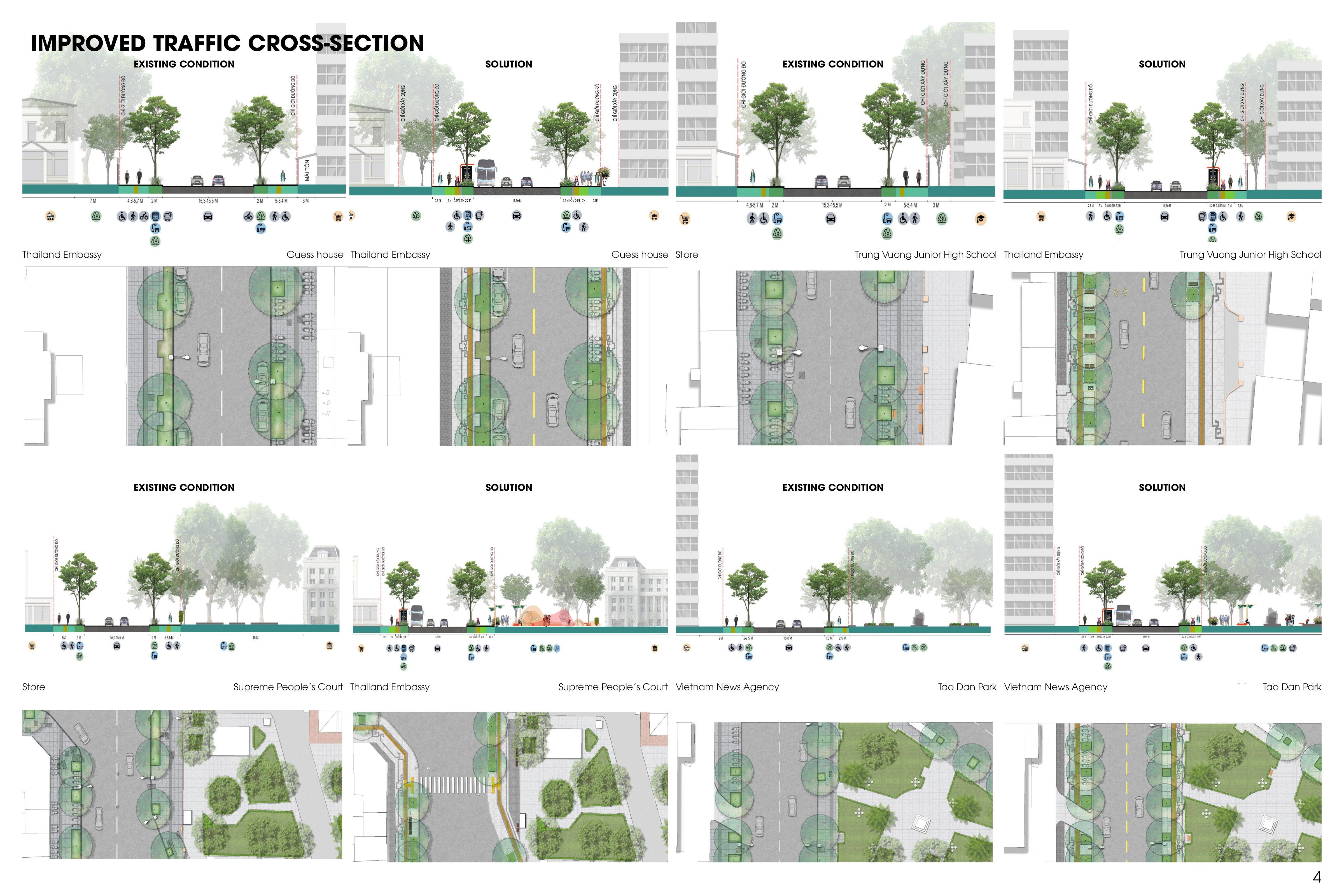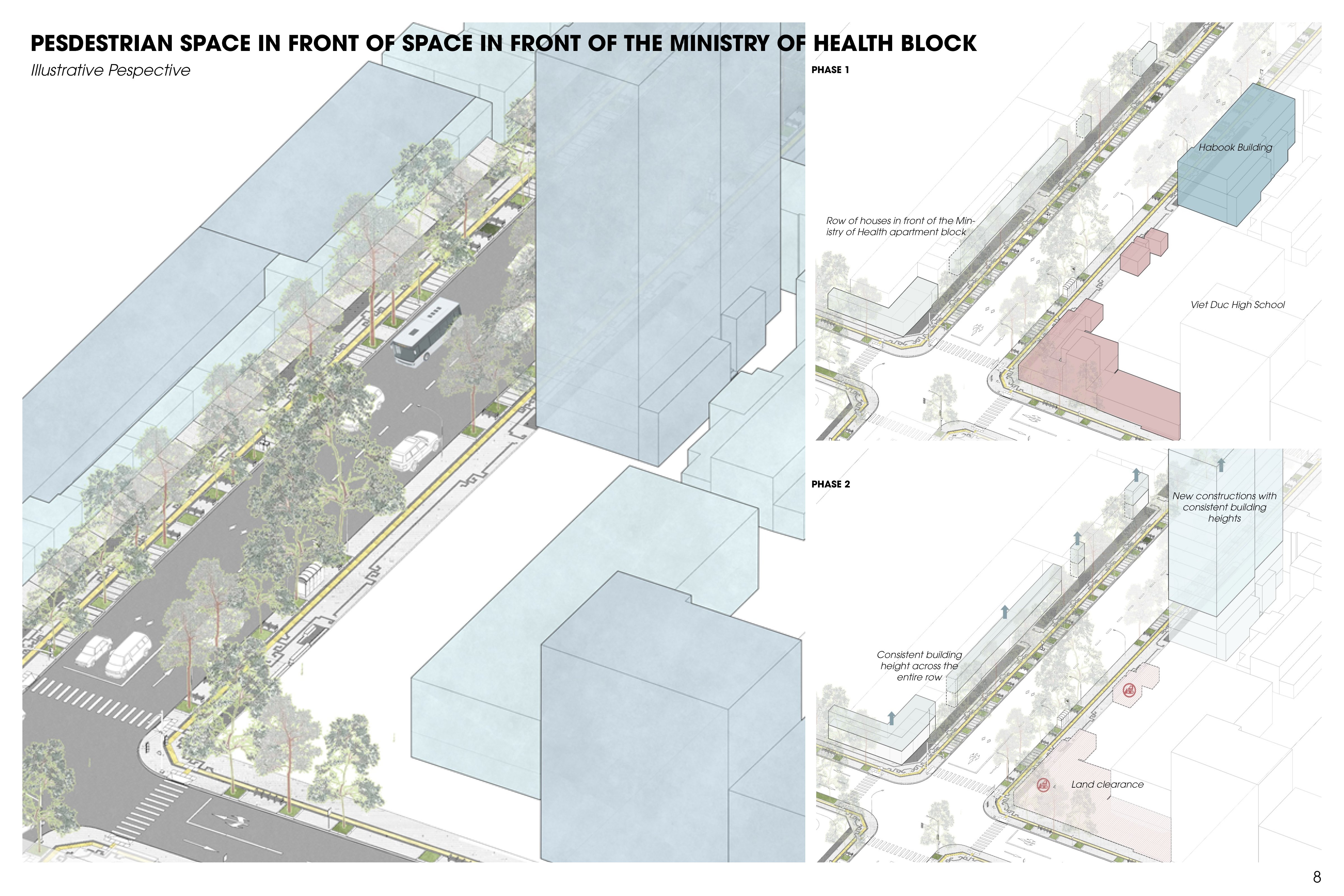 The Urban Design Project for Ly Thuong Kiet Street explores the connection between three key elements: Culture – Community Activities – and Community Connectivity, through the renovation of sidewalk spaces along the street into public activity areas. The project aims to enhance urban amenities and greenery, restructure sidewalks to suit the sidewalk economy model, and express cultural values through pavement patterns, spatial forms, especially around public buildings and heritage structures of significant architectural and historical value along the street. (Read More)
