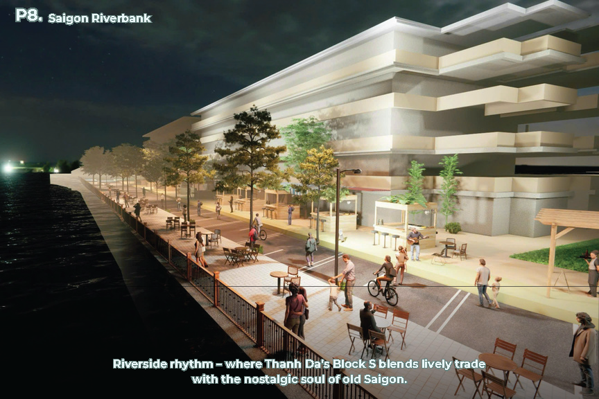 By integrating environmental, social, and cultural aspects, the proposal envisions a resilient and sustainable urban model driven by community participation. It leverages the natural landscape of the Saigon River embankment to create an open, vibrant, and inclusive space — blending heritage, people, and modern urban life.