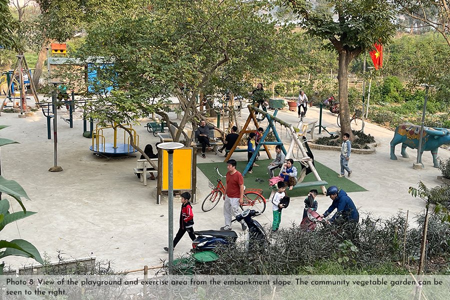 Located outside the city's dike in a flood prone area of the Red River Bank, the neighborhood of Chuong Duong is inhabited by migrant workers living in complex social structures, mostly low-income people, with precarious and vulnerable living conditions. The informal aspect of the area with high construction density and many narrow alleys leaves people without common public spaces, and disconnected with nature, despite the river being only a few hundred meters away, with a migrant low-income population that felt not deserving an access to public space in the city with the same rights as any other citizen, living in an area that was once heavily polluted by trash and used as construction dump yards, with wastewater being directly discharged onto the land from the neighboring residential area. (Read More)